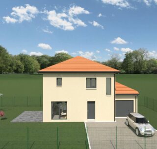 En plein centre ville d'AMBERIEUX EN DOMBES , où vous retrouverez tous les commerces dont vous aurez besoin, Maisons AXIAL vous propose de construire votre maison à étage de 110m² (4 chambres) sur un terrain de 300 m² viabilisé - REF LAETR