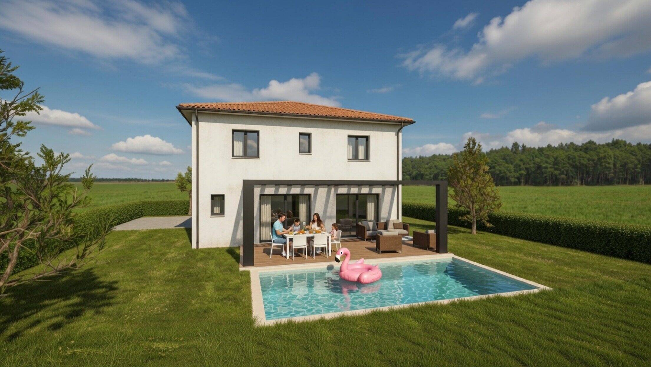 *Tarif janvier 2026. Solution Pompe à Chaleur. Possibilité autres modes de chauffage. Prix susceptibles d’être modifiés selon secteurs et options choisies par l’acquéreur. Prix inclus maison fini hors peinture, cuisine, taxes, frais de notaire et hors aménagements extérieurs : terrasse, piscine...