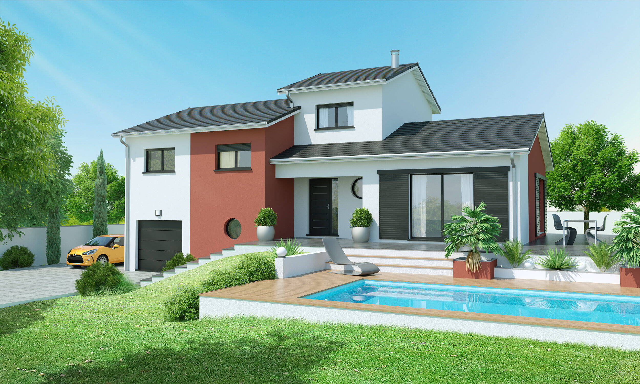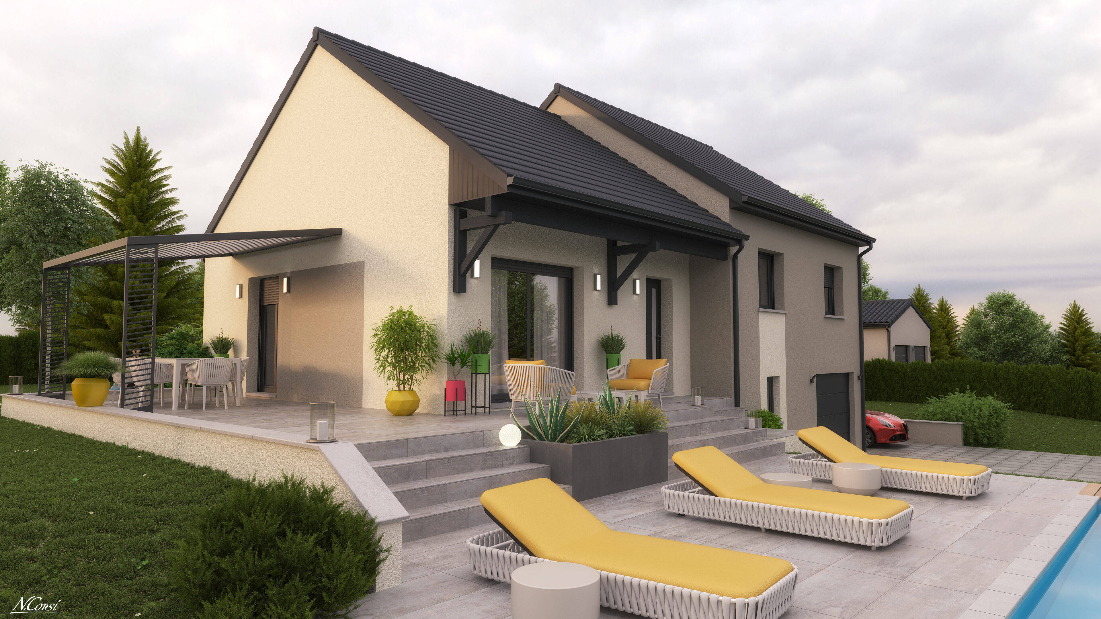 Prix hors frais de Notaires, taxes, aménagements extérieurs : piscine...