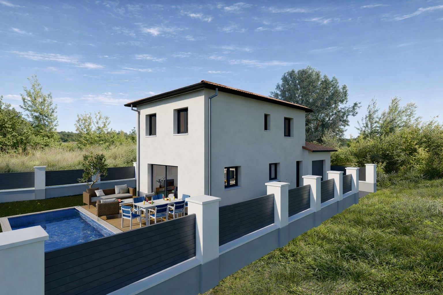 *Tarif janvier 2026. Solution Pompe à Chaleur. Possibilité autres modes de chauffage. Prix susceptibles d’être modifiés selon secteurs et options choisies par l’acquéreur. Prix inclus maison fini hors peinture, cuisine, taxes, frais de notaire et hors aménagements extérieurs : terrasse, piscine...