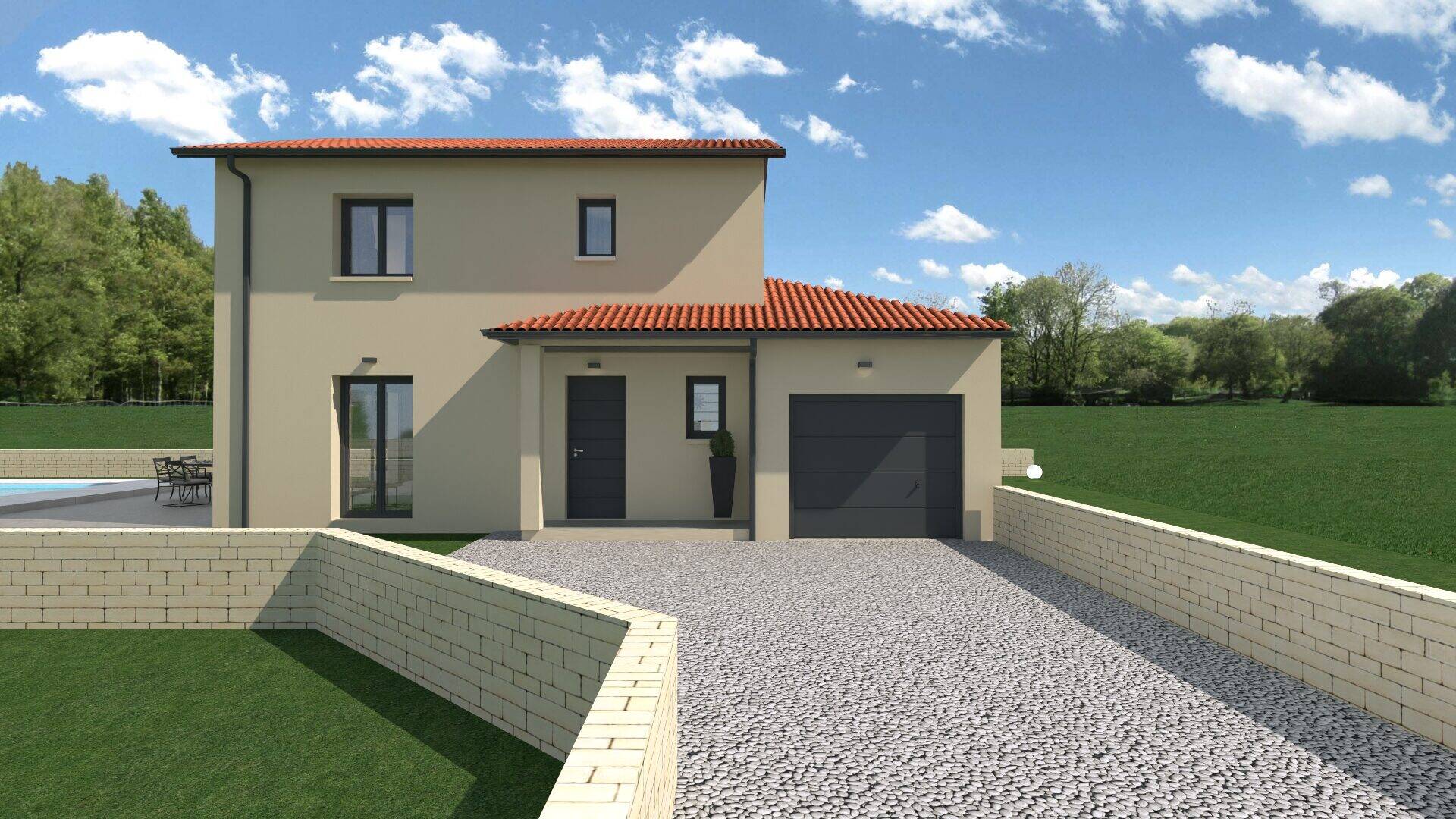 • Type de maison : Maison à étage avec menuiserie gris anthracite RAL7016