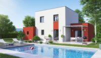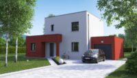 Notre modèle Emma est une maison à étage 3 volumes, avec toit plat,