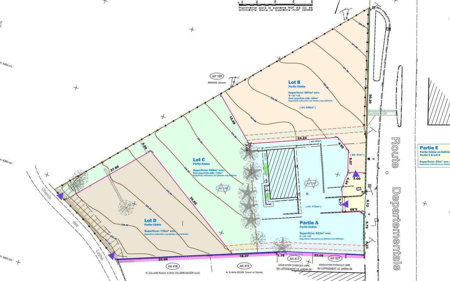 A saisir, le lot C et D de cette DP de 3 Parcelles, surface de 1582m² au total pour les 2 parcelles sur la commune de Nivolas, chemin des bottes, a viabiliser avec Egout.